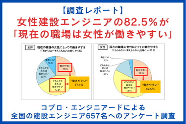 PR女性建設エンジニアの82.5%が「現在の職場は女性が働きやすい」