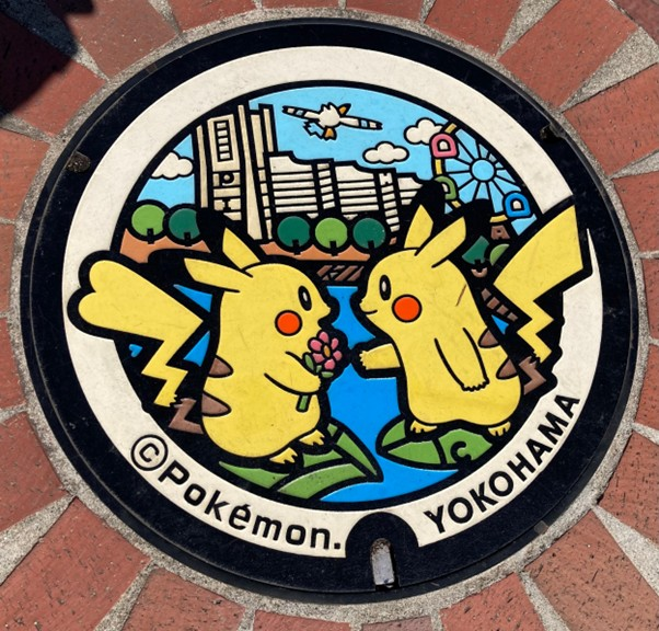 世界的に人気なポケモンのキャラクター“ピカチュウ”をモチーフにしたデザイン。ポケモンのキャラクターをモチーフにした「ポケふた」と呼ばれる蓋は全国各地に設置されています。