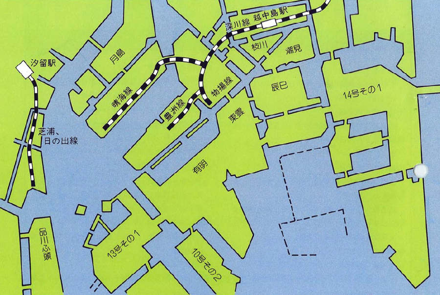 東京都専用線とは東京港における貨物輸送専用の鉄道路線で、深川線、晴海線、芝浦線、日の出線が戦後に次々と敷設され、総延長は24km余りに及びました。高度経済成長期には石炭やコークス、塩、小麦、ロール紙などさまざまな物資を運び、当時の物流を支えていました。