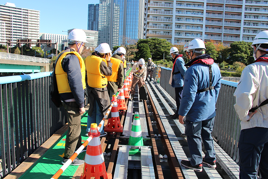 では、2024年11月23日に行われた現場見学会時の施工状況を見てみましょう。ちなみに、旧晴海鉄道橋の架設日は1957年11月23日。見学会開催日とちょうど同じ日にちだったんです!