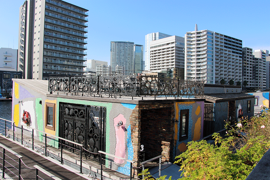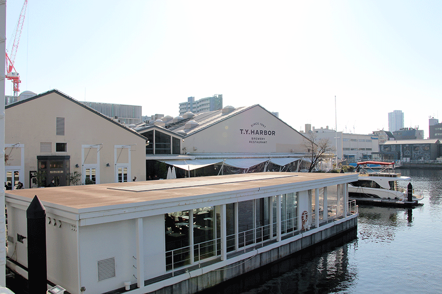 こちらは1997年に倉庫をリニューアルして開業したブルワリーレストラン「T.Y.HARBOR」。手前の運河に張り出した部分はレストラン船で、東京都から水域占用許可を受けて係留しています。