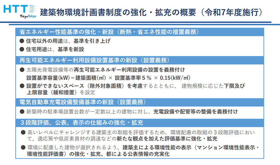 ――ちなみに、2025年4月には建築基準法や建築物省エネ法の改正があります。東京都における各制度の施行時期はこれらに合わせた形でしょうか?
