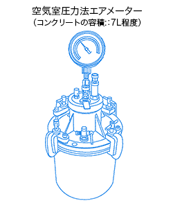 - 空気室圧力法(JIS A 1128 フレッシュコンクリートの空気量の圧力による試験方法)