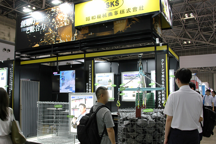 石が詰められた大きなかごが目を引くこちらは、昭和機械商事株式会社のブースです。同社担当者も「『インパクトがある』と声をかけられる」と話します。