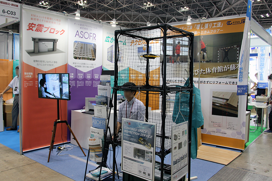 もう1つの狭小空間調査サービスは、小型ドローンなどを用いて、天井裏、下水道やカルバートの内部など、人が入れないような狭小空間の調査・点検を行うサービスです。同社の担当者は「総合請負だけではない、さまざまなサービスを展開している自社の強みを知ってもらいたい」と話していました。