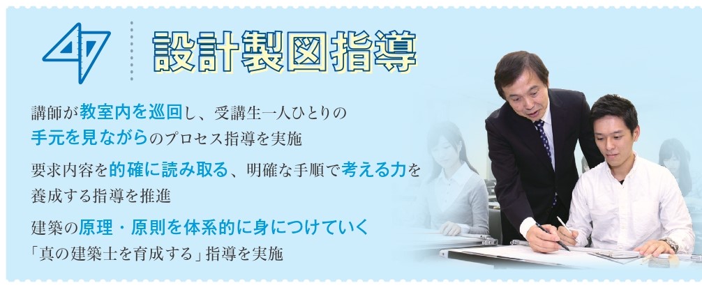 総合資格学院は、1級建築士試験において、学科と製図を1年で合格する全国ストレートの合格者占有率№1の実績を誇る予備校です。