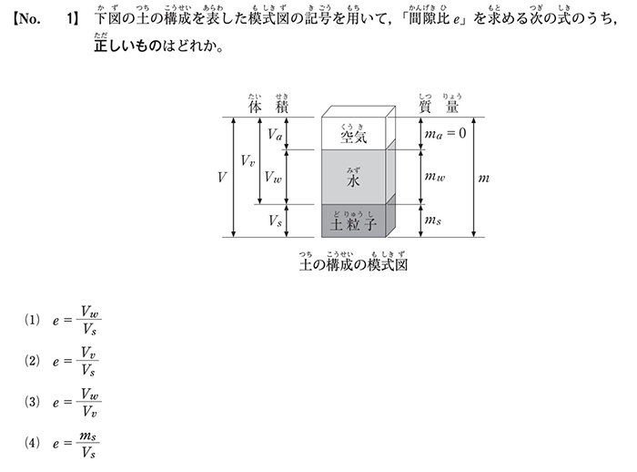 例えば、間隙の体積(Vv)と土粒子の体積(Vs)が同じ(Vv=Vs)土では、「間隙比e=1」となります。