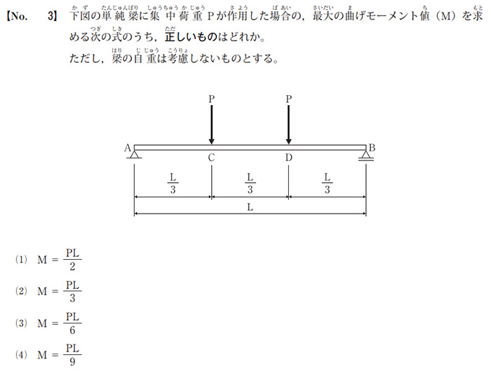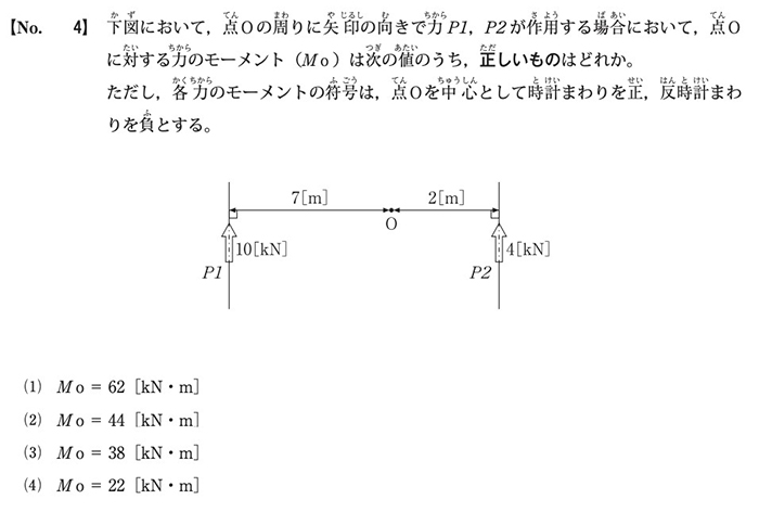 令和7年度2級第一次検定(前期)の4問目は、曲げモーメントの大きさを計算する問題でした。