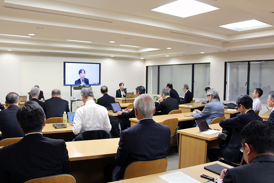 脱炭素については、この後に登壇する大岡龍三・東京大学教授が委員長を務める特別調査委員会を設置して、調査研究活動を行っていることなどを紹介しました。