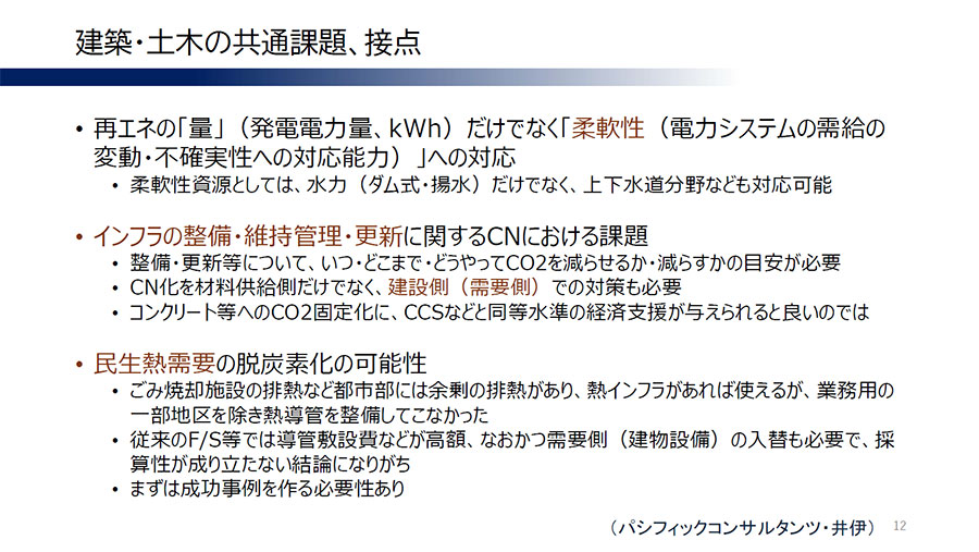 そして最後にもう1点。「内心の“魂胆”は人材確保」とし、「次世代はカーボンニュートラルに非常に熱心。土木・建築の魅力を発信するうえでも、カーボンニュートラルの取り組みを押し出していくことが重要ではないかと考えている」とまとめました。