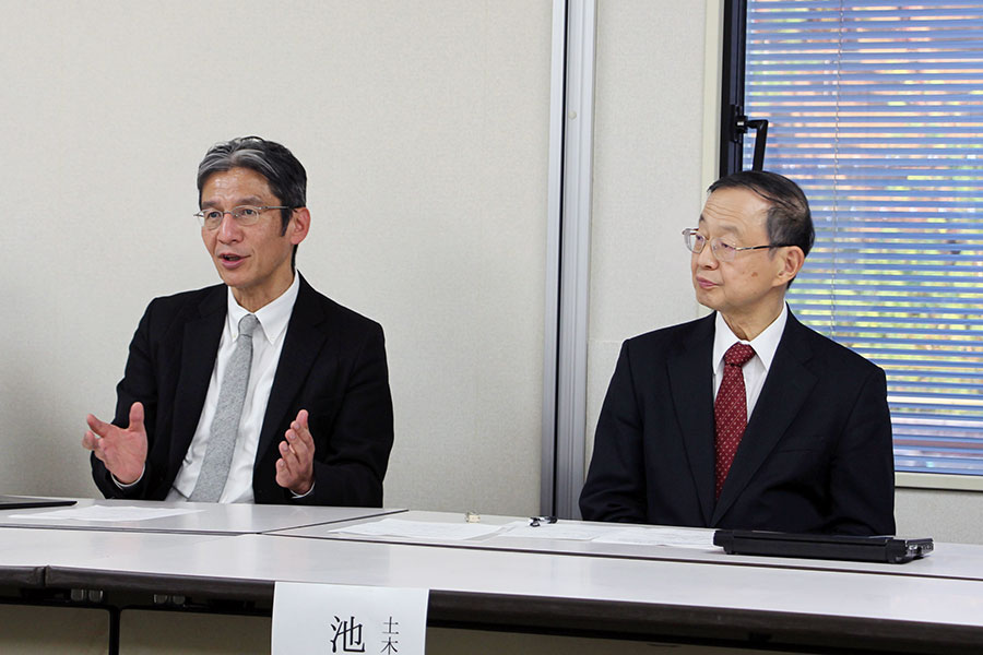 シンポジウムを終え、その後に開かれた合同記者会見で、土木学会の池内会長と日本建築学会の小野田会長がともに強調したのは「さまざまな社会変化に対応するために、土木と建築が境目なく連携する」ことの重要性。