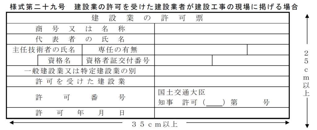 また、工事現場にも建設業の許可票を掲示しなければなりません。