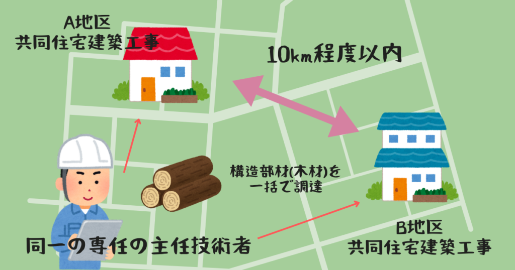 ”同一の建設業者”が”同一の場所または近接した場所”とは、以下、条件に該当する場合のみとなります。