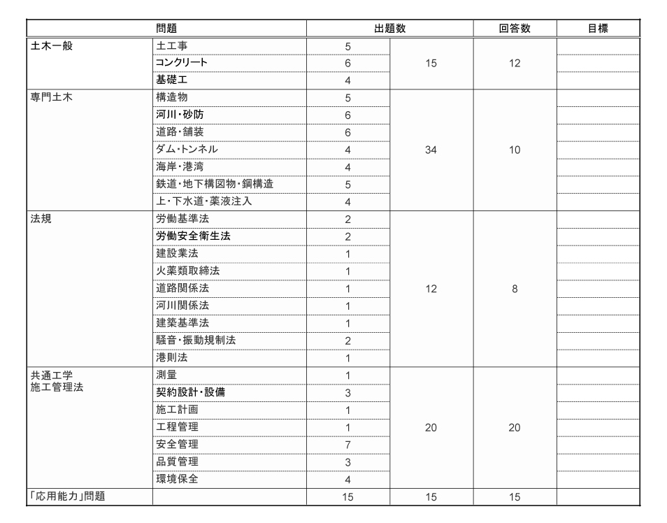 - 施工管理法(応用問題)だけで6割以上の正解