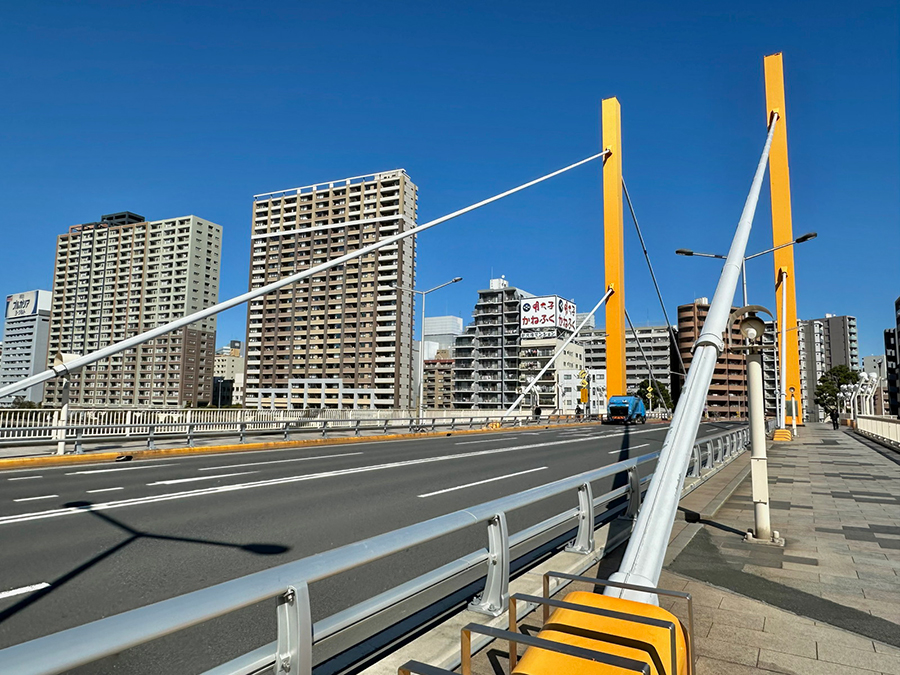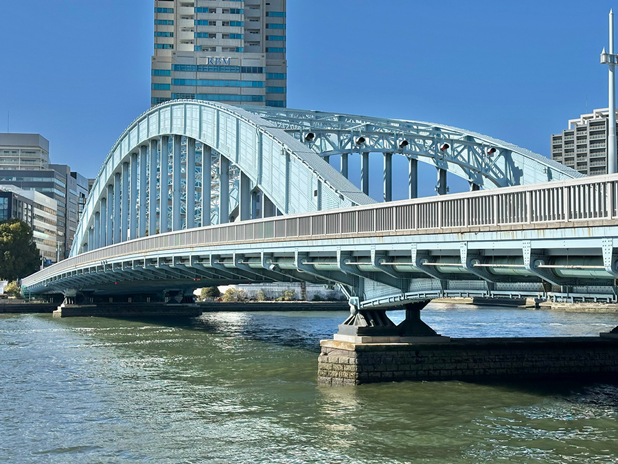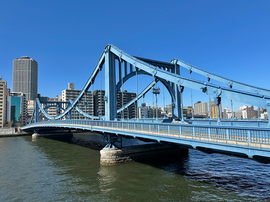 その次の清洲橋は復興橋梁でも最も流麗な外観が有名で、「震災復興の華」とも称されたほど。2007年には国の重要文化財にも認定されており、復興橋梁に求められた「橋梁美」を最も強く体現した橋です。