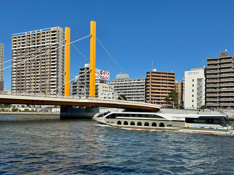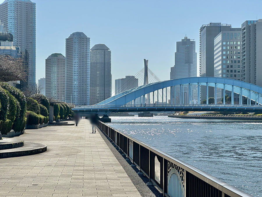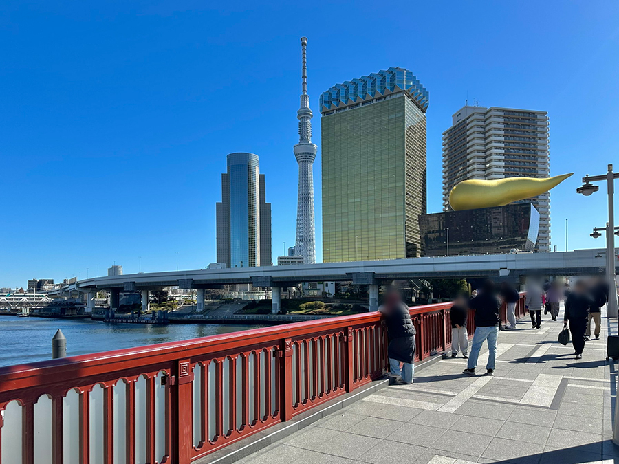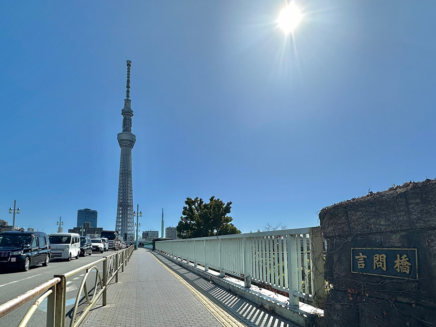 言問橋から南に進むと、東武伊勢崎線の鉄道橋に沿って2020年に架けられた歩道橋「すみだリバーウォーク」が見えてきます。この橋もコロナ禍の最中にオープンし、現在は人気スポットに。橋にはどこか災害や苦難を乗り越える力もありそうです。
