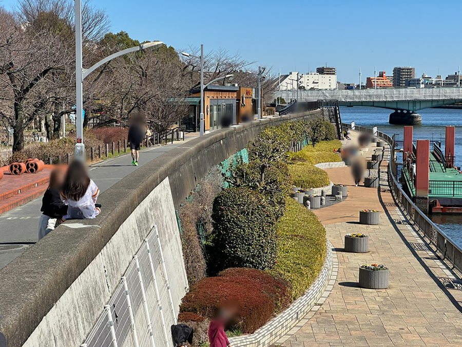清洲橋の周辺は隅田川遊歩道もかなりきれいに整えられており、特に江東区側の『かわてらす』では、水辺空間を活用したテラス付きのカフェやホテルなども営業。天気の良い日には隅田川・清洲橋・水上バス・ビル群・スカイツリーがワンセットになった特上の時間を満喫できます。
