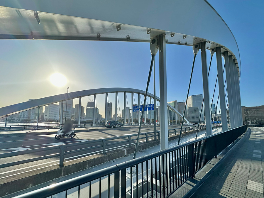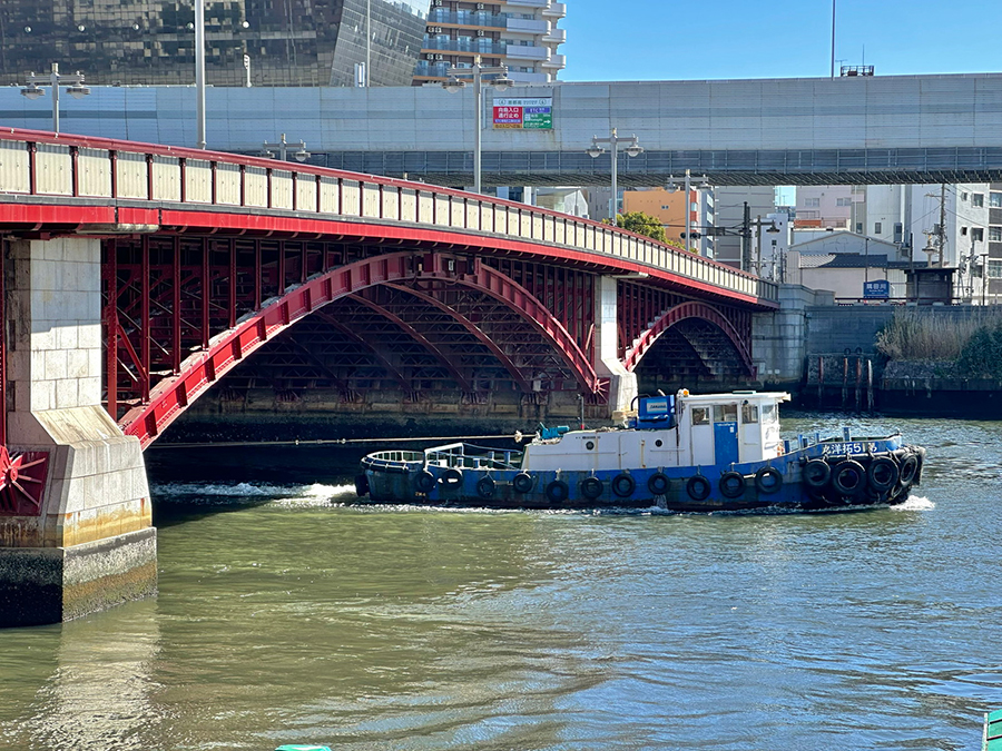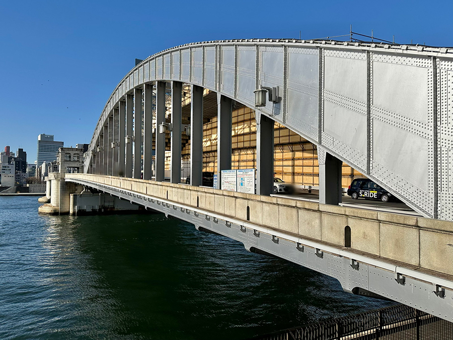 清洲橋からさらに先へ進み、首都高速9号深川線とワンセットになった隅田川大橋(1979年竣工)の下をくぐると、復興橋梁散策もいよいよ終盤。この先にある永代橋は大正時代の1926年竣工と、復興橋梁の中で最も早い時期に架けられた橋です。