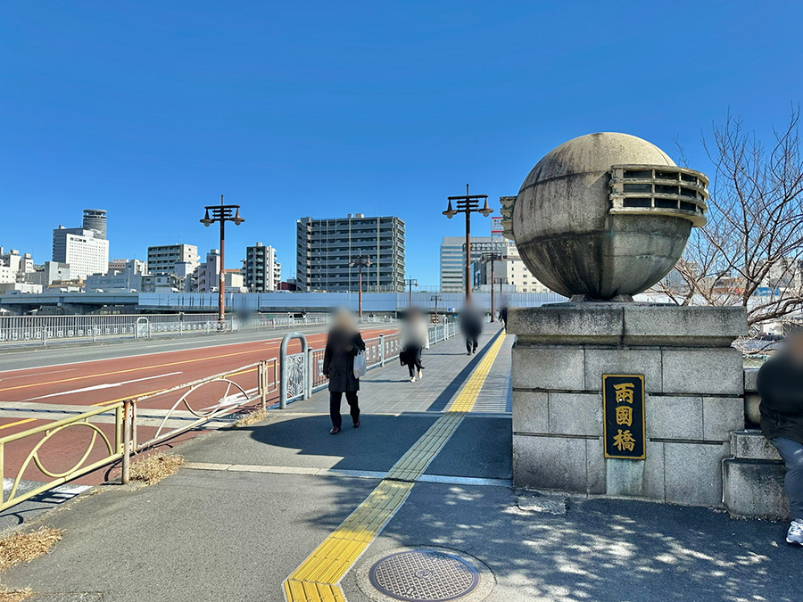 その回向院から直近にあるのが両国橋です。初架橋は江戸時代の1659年(万治2年)もしくは1661年(寛文元年)とも言われており、何度かの架け替えを経て1904年(明治37年)に鋼橋となり、震災後に現在の形となりました。形式は言問橋とほぼ同型の力強いゲルバー橋。江戸時代の橋も1657年(明暦3年)の『明暦の大火』で大勢の人が逃げ遅れて焼死した出来事を受けて架橋されたものであり、江戸時代と近代と両方の大火災に関わる橋となっています。